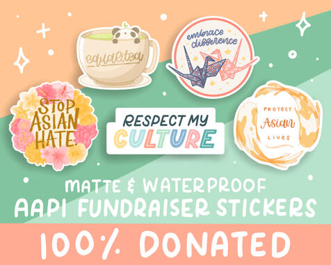 i've worked with local organizations and high school clubs to design, print, and cut stickers in support of a fundraising effort. we've donated to organizations such as World Vision, Innocence Project, and the Black Lives Matter Massachusetts Bail Fund. in april 2021, i partnered with my two close bullet journal friends & our local high schools to raise over $1000 for AAPI support.
