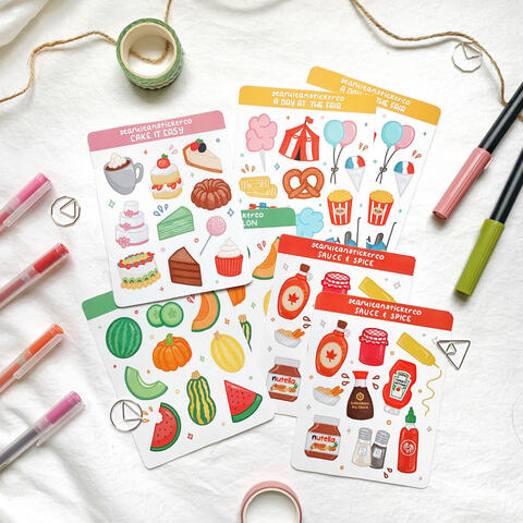 hand-drawn, decorative stickers for bullet journaling, scrapbooking, pen pal letters, etc.